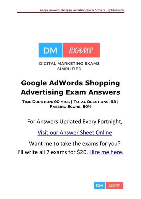 Download google adwords exam answers Doc online is a convenient and frugal way to read google adwords exam answers you love right from the comfort of your own home. Yes, there sites where you can get Doc "for free" but the ones listed below are clean from viruses and completely legal to use.